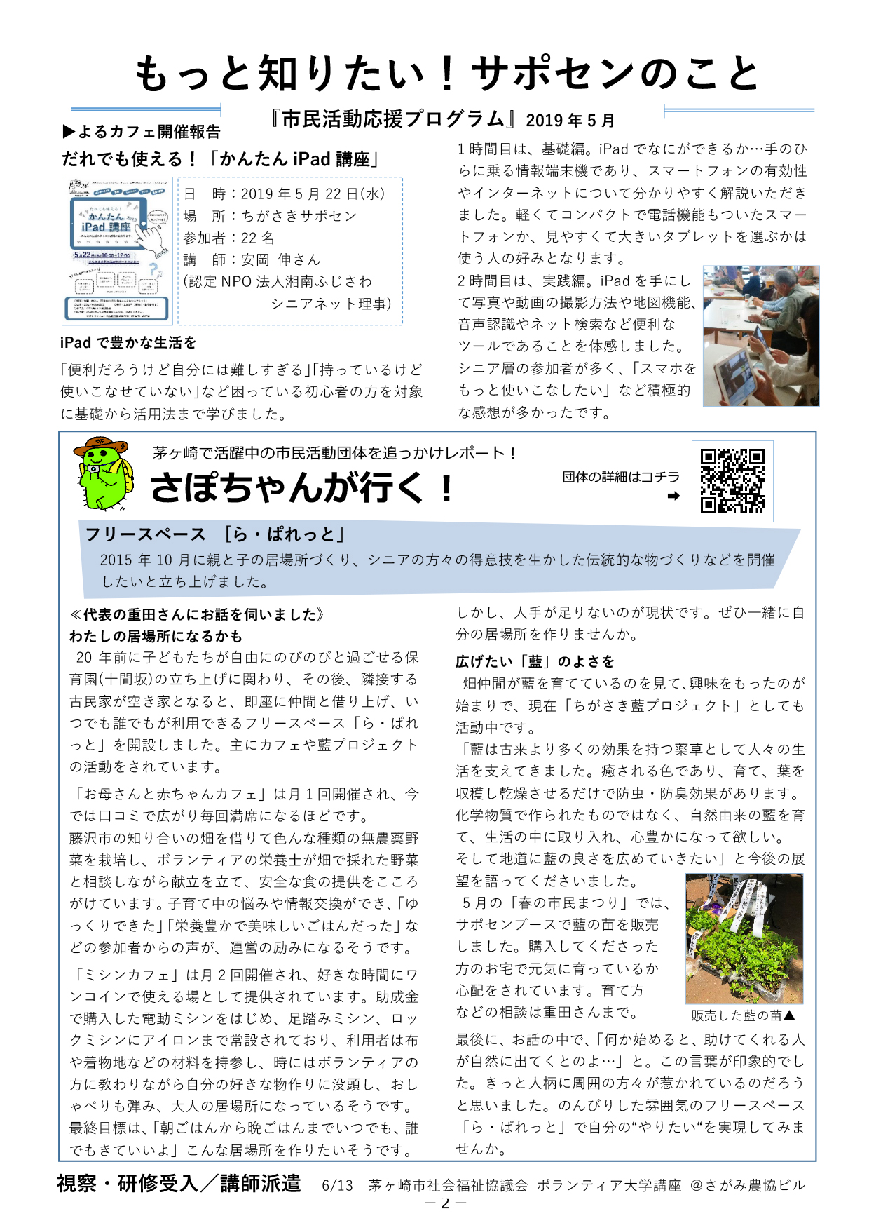 ちがさきサポセンのニュースレターはこちらからダウンロードできます。